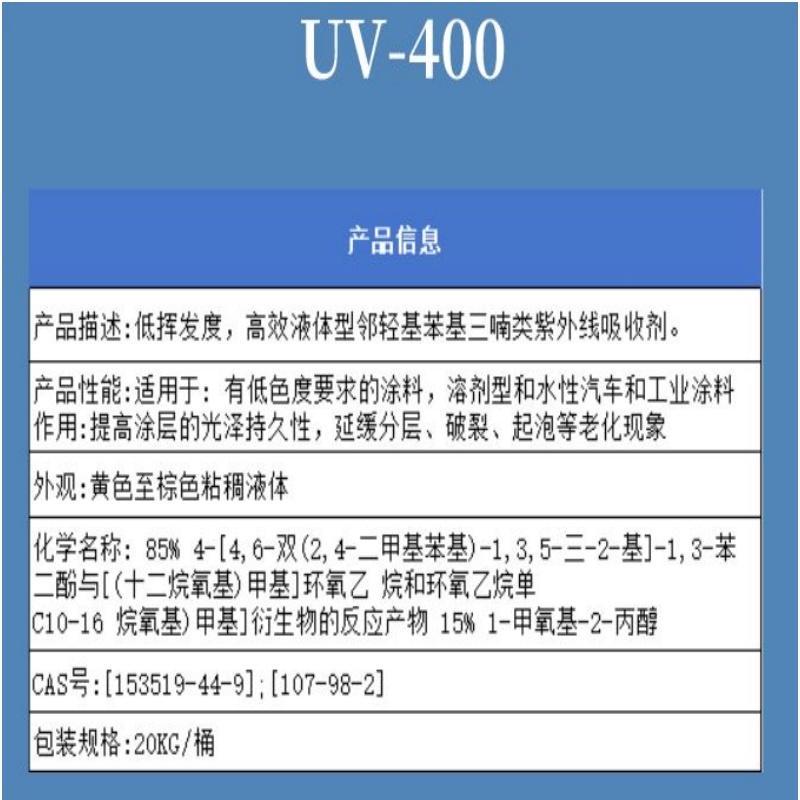 上一篇紫外线吸收剂UV-400W